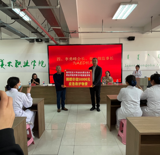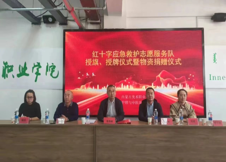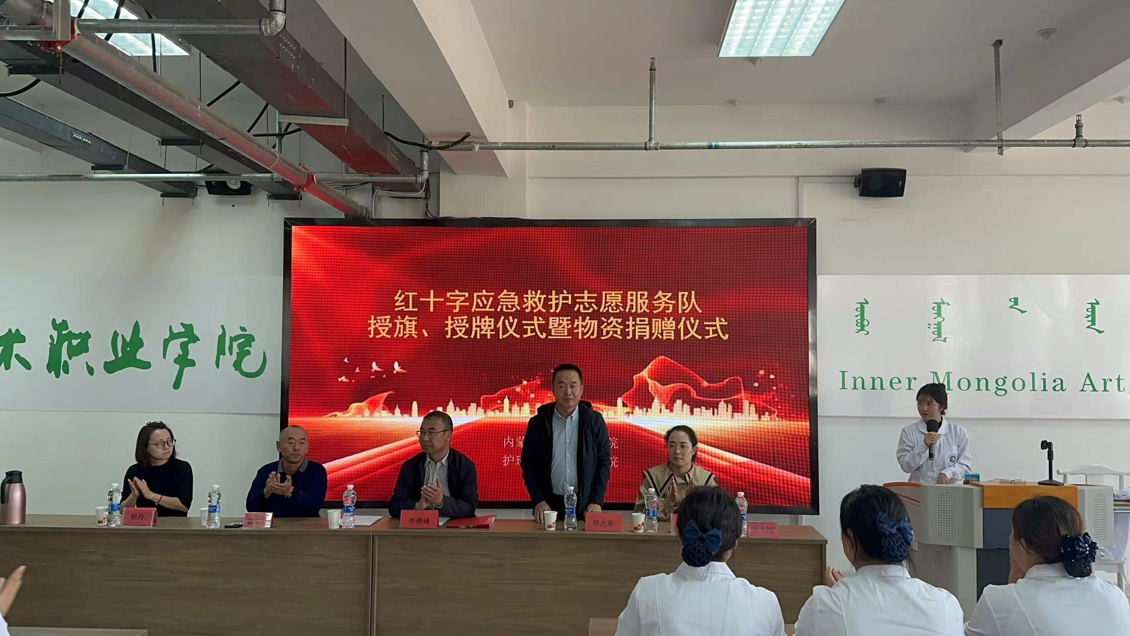 內(nèi)蒙古美術(shù)職業(yè)學(xué)院護理與中醫(yī)康復(fù)學(xué)院紅十字應(yīng)急救護志愿服務(wù)隊授旗、授牌儀式暨物資捐贈儀式