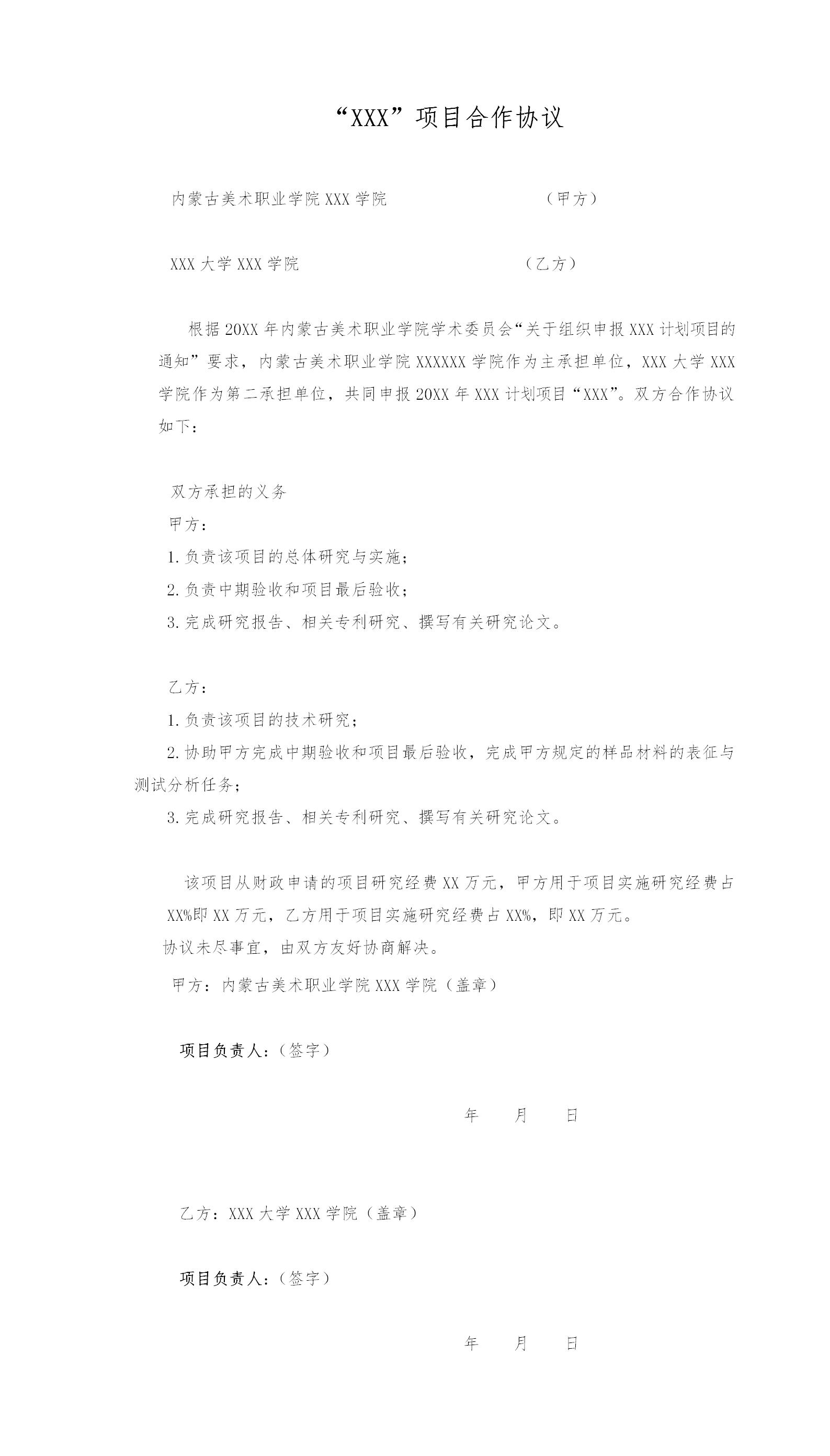 內(nèi)蒙古美術(shù)職業(yè)學(xué)院縱向項(xiàng)目校際間(校期間)合作協(xié)議范本