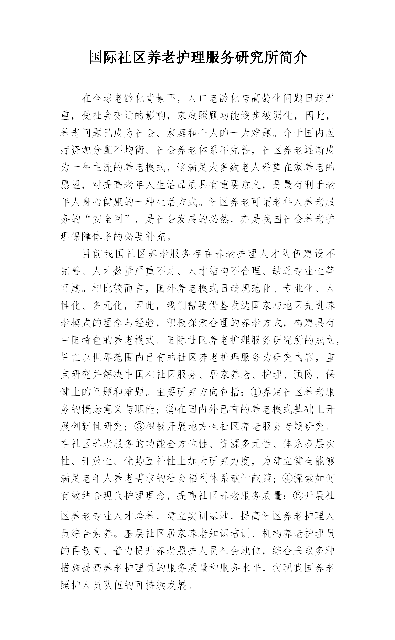 國際社區(qū)養(yǎng)老護(hù)理服務(wù)研究所簡介