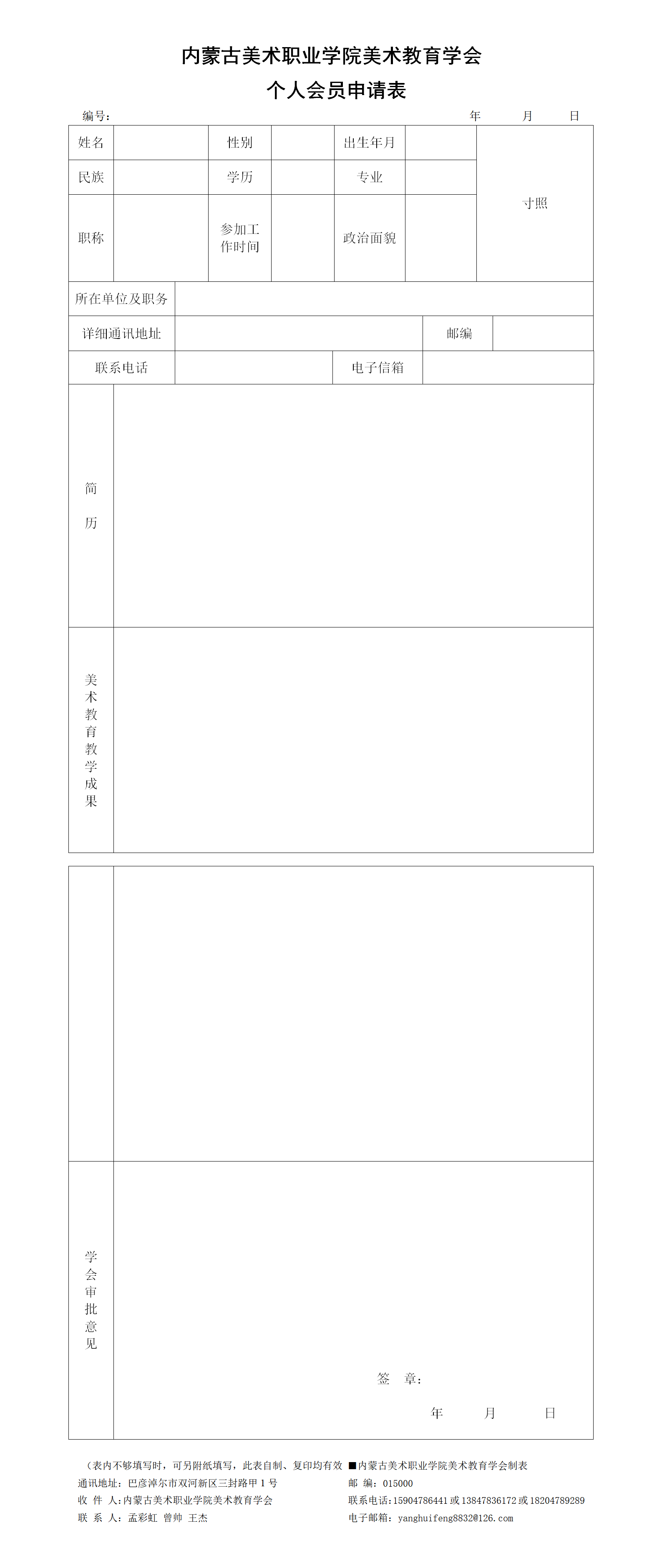 內(nèi)蒙古美術(shù)職業(yè)學(xué)院美術(shù)教育學(xué)會(huì) 個(gè)人會(huì)員申請(qǐng)表