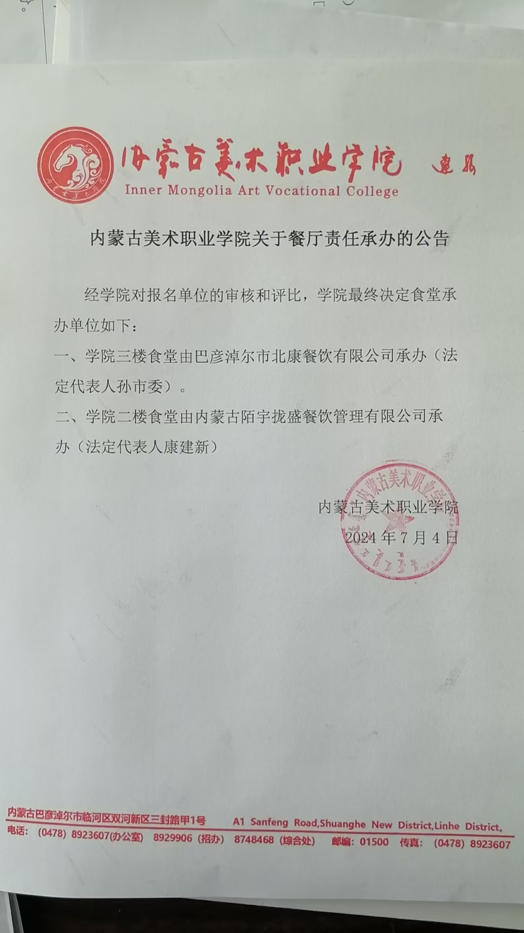 內(nèi)蒙古美術(shù)職業(yè)學院關(guān)于餐廳責任承辦的公告