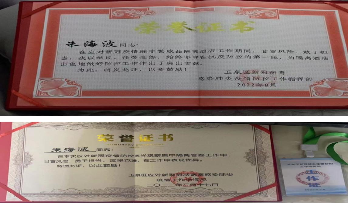 2021年7月,朱海波順利畢業(yè),并憑借扎實(shí)的專業(yè)知識和過硬的技能素質(zhì),成功就職于呼和浩特市玉泉區(qū)紅十字醫(yī)院急診科。在這里,她迅速成長為一名業(yè)務(wù)精湛、責(zé)任心強(qiáng)的優(yōu)秀護(hù)士。面對突如其來的新冠肺炎疫情,她義無反顧地投入到抗疫一線工作中。她參加了全員核酸采集任務(wù),不顧個(gè)人安危進(jìn)入隔離酒店參加醫(yī)學(xué)觀察隔離管控工作。在寒冷的冬天里,她穿著厚重的防護(hù)服連續(xù)工作數(shù)小時(shí),為抗擊疫情做出了積極貢獻(xiàn)。2023年1月,她又主動請纓參加了國際航班境外人員醫(yī)學(xué)管控隔離任務(wù)。她用自己的專業(yè)知識和無私奉獻(xiàn)精神贏得了患者和同事們的廣泛贊譽(yù)。